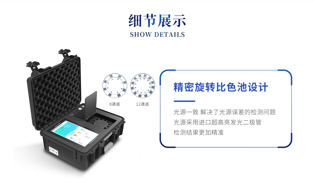 *①儀器采用精密旋轉(zhuǎn)比色池設(shè)計,使用光源一致,可以解決各通道間由于光源誤差帶來的檢測結(jié)果誤差問題,檢測結(jié)果更加精準,1-12通道間誤差千分之一。